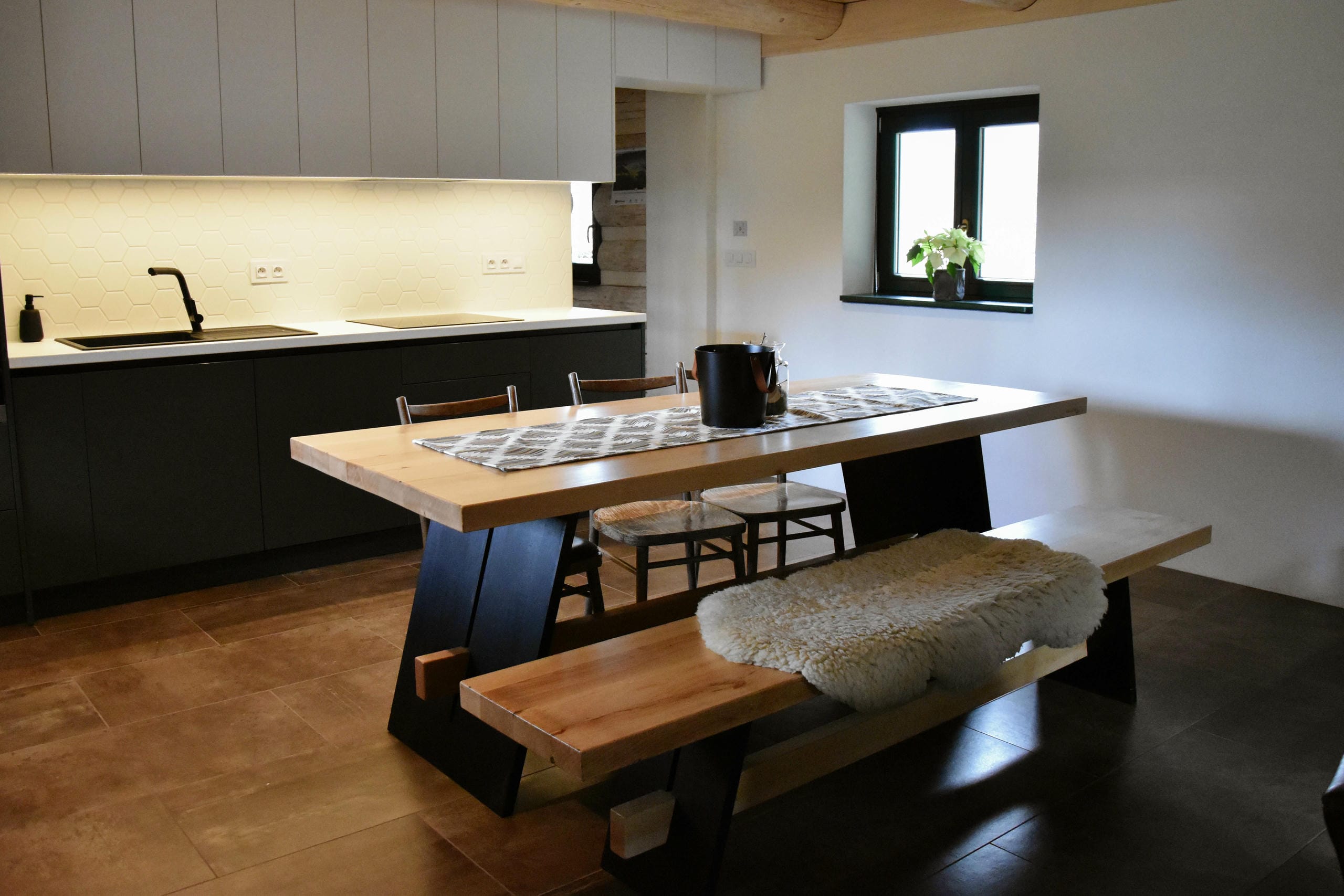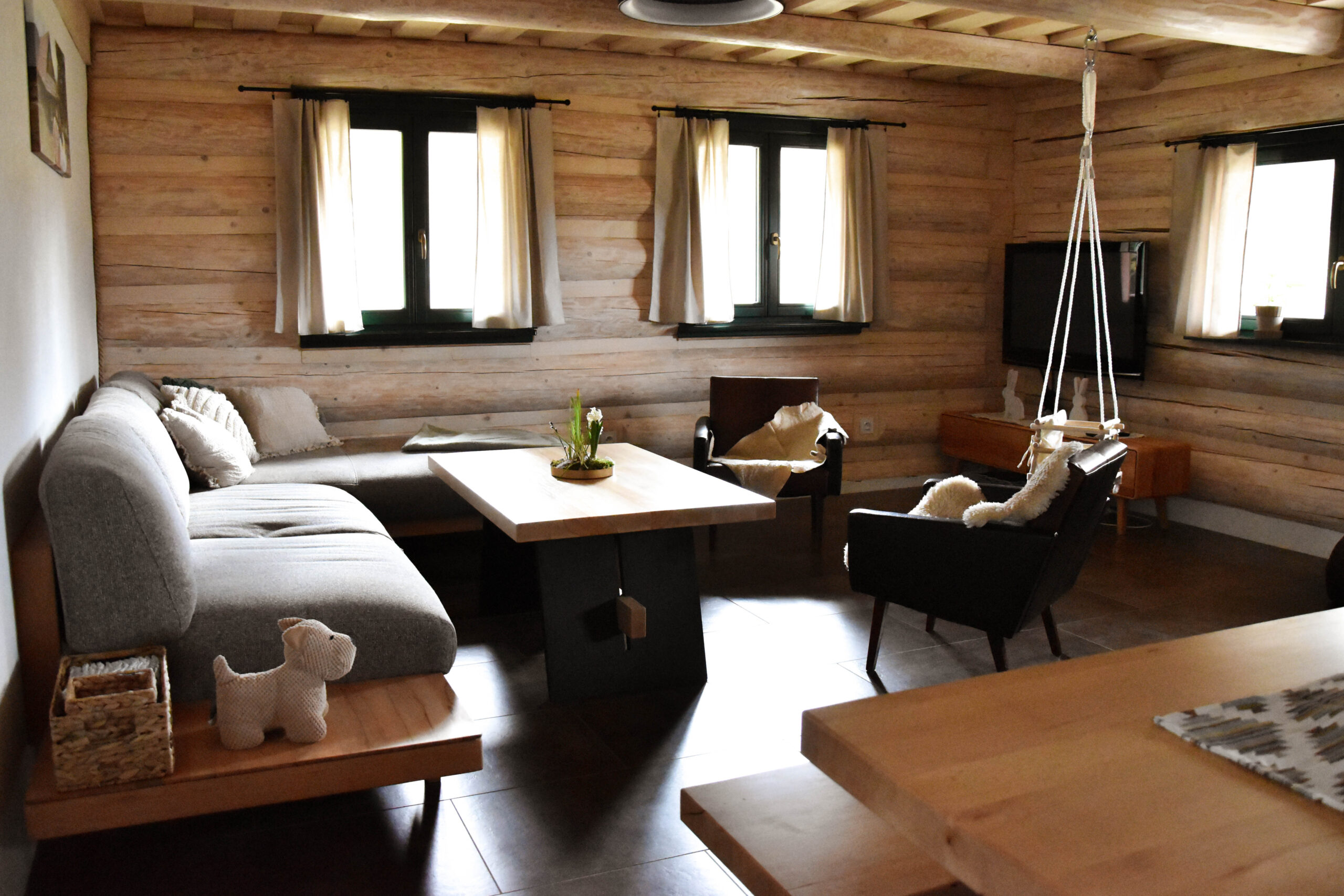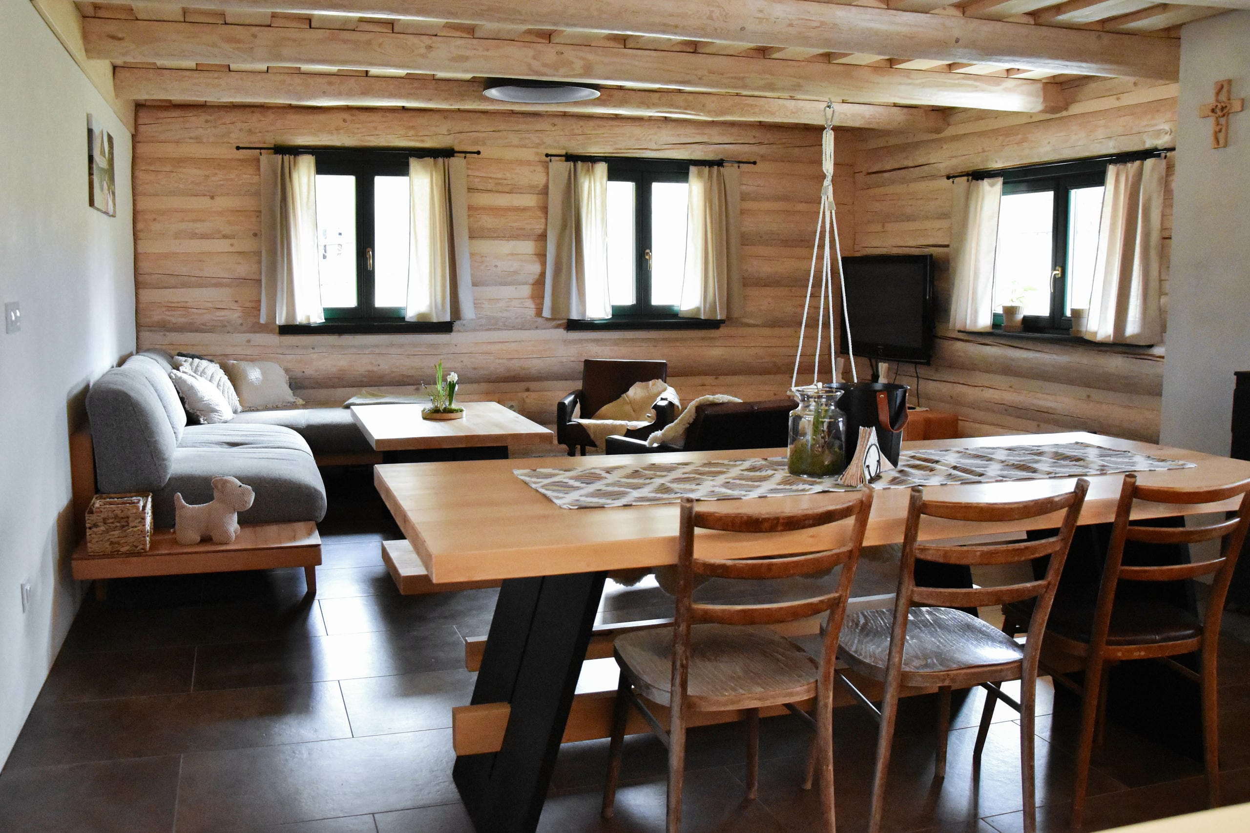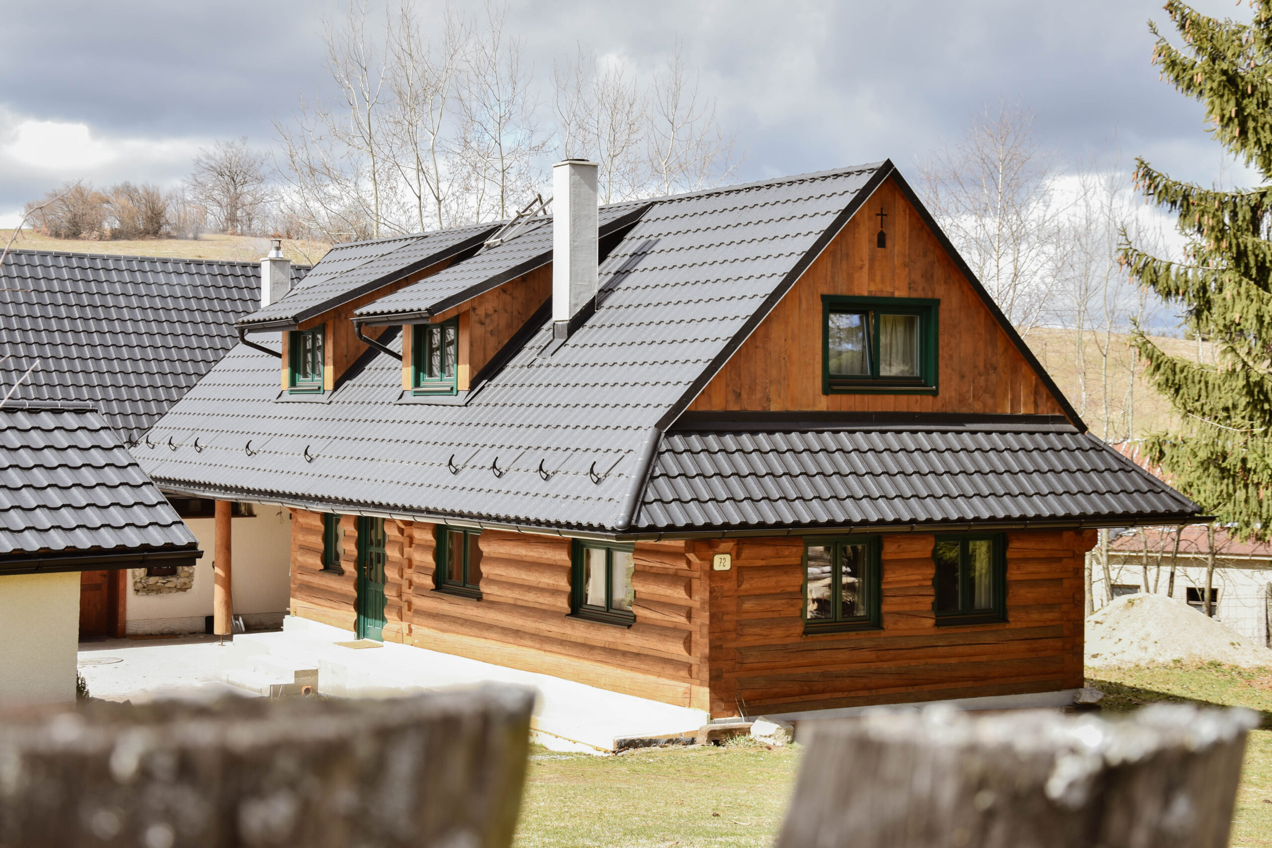 Tu, na tejto krásnej samote, sme postavili našu vysnívanú drevenicu a s láskou zrekonštruovali aj starú hospodársku budovu Kamennú chatu, ktorá dostala nový život, no zostala verná svojej pôvodnej podobe.